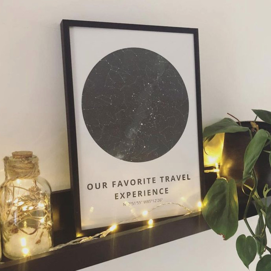 Ken jij ze al, onze sterrenposters? Dit zijn sterrenhemels van specifieke datums, afgebeeld op een poster. Vandaar ook de uitspraak "het staat in de sterren geschreven". De datum van je trouwdag, de geboorte van je kind(eren) of een andere belangrijke gebeurtenis: de sterren hadden toen een unieke stand. En met onze editor kunnen we die sterrenhemels terughalen en op een poster printen. Maak je sterrenposter online bij Printmijnstad.